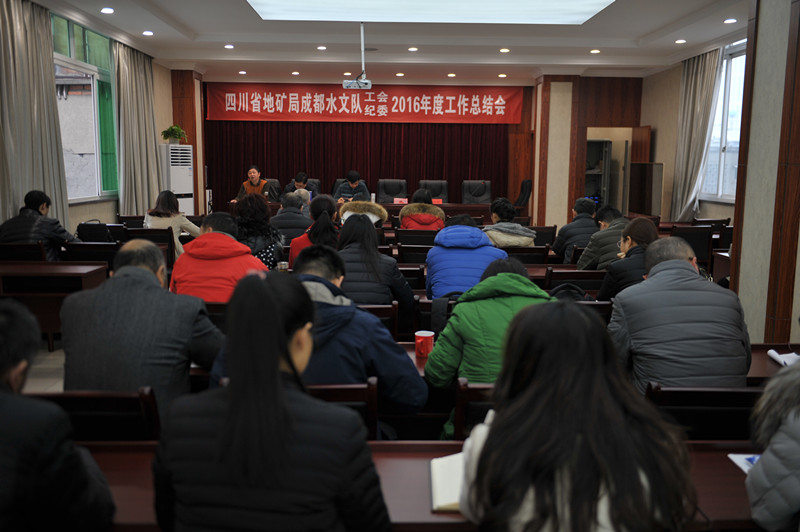 廖主席代表工會做了2016年工會工作總結??偨Y從思想建設、勞動競賽、自身建設、民主管理、勞模管理服務、文體活動、幫扶工作等角度,全面梳理了2016年工會工作取得的成績。隊工會在2017年將把握新形勢新常態下對工會工作的新要求,按照省總和局工會的工作部署,加強思想引領、強化維權服務、夯實基層基礎,團結動員全隊職工為譜寫中國夢四川地質篇章貢獻智慧和力量。