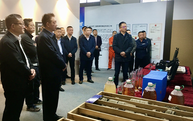10月12日下午,瀘州市委副書記、市長楊林興,副市長郭慶一行蒞臨川勘集團承擔的瀘州市敘永縣落卜鎮廢棄硫鐵礦地下水污染防治項目調研指導。敘永縣委副書記、縣長唐杰、副縣長冉安健,川勘集團黨委書記謝大軍、董事副總經理張恒陪同調研。