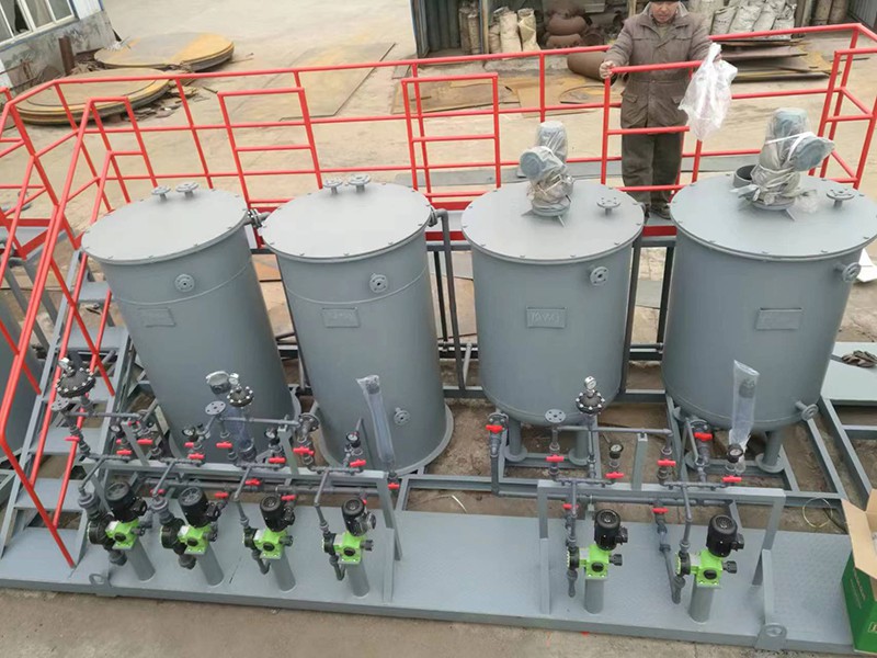 加藥裝置通過不同的工藝設計,準確配置各類固體和液體的化學藥品的溶液,再用計量泵準確投加,以達到各種設計要求。如除垢、除氧、混凝、加酸、加堿等。加藥過程可手動操作,也可通過PC機、磁翻板液位計、PH計、行程控制器、變頻器等各種電器、儀表、使加藥裝置成為機電一體化產品、實現自動控制。